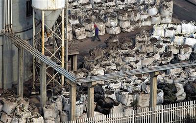 1月9日,在武汉博瑞公司汉阳锅顶山垃圾焚烧厂内,燃烧后大量的飞灰堆满了厂内一些道路▼-▽。