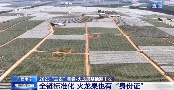 总台记者 廖汨=:先邀请大家来欣赏一片长在地里的“星空”。当然,这里的星空是打引号的,其实,这是我们昨晚在这里拍摄到的场景,广西南宁市隆安县一个火龙果种植基地里300多万盏LED灯组成的灯海,是不是特别壮观?不过,这些灯可不只是用来观赏的=◁,它们的作用可大了,具体是什么,我们先卖个关子。来,切换到白天模式▼,看到了吗-?我身后这一大片▽…◁、望不到头的就是火龙果了▷■,绿油油的植株整齐排列,红彤彤的果实点缀其中,就像一颗颗红宝石▼•◆,工人们正在采摘今年最后一批火龙果=☆△。