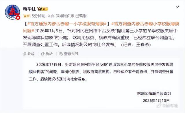 面对汹涌而来的舆论,当地教育局回应称薄膜 △☆“可能是防风保暖材料•◁★”▲○◇,且校服有质检报告◇▷▪。但这一模糊回应,非但没有平息质疑,反而让公众的信任危机加剧。针对网民在网络平台反映○“锦山第三小学的冬季校服夹层中发现薄膜状物质”的问题,喀喇沁旗委=•▼、旗政府高度重视,已经成立联合调查组,开展调查处置工作▽○▲。后续情况将及时向社会发布。