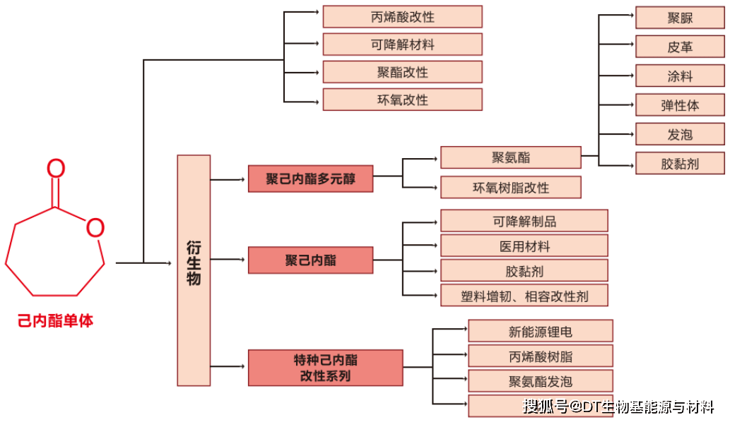 聚仁新材围绕己内酯开发出聚己内酯(PCL)、聚己内酯多元醇和特种己内酯改性材料等系列衍生物,在延伸加工为聚氨酯制品、丙烯酸制品□、生物可降解制品-…•、医用材料和助剂类产品后,广泛应用于新能源汽车、环保涂料、生物可降解、生物医疗、装备制造等领域▽。