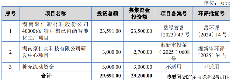 聚仁新材先后完成多轮融资,参与机构包括深创投、七匹狼创投、前海母基金、湖南高新投等。2025年6月,公司北交所IPO获受理•=,2025年11月第一轮问询□▲,拟募集资金2.92亿元,用于4万吨/年特种聚己内酯智能化工厂项目、研发中心项目及补充流动资金■。