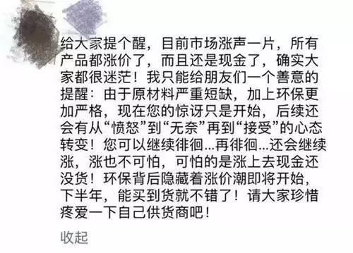 最近朋友圈都被这张图刷屏了!这就是目前各行业的真实写照。煤炭涨、钢铁涨、有色涨、原纸涨!塑料膜涨!…接下来,别再跟我们说能不能优惠了,早晚都要涨,你该关心有没有货啦!