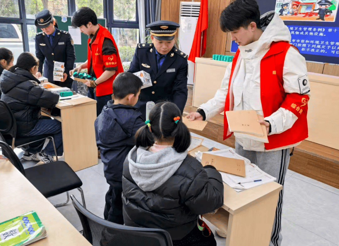 执法队员、环卫工等城管人,在巩固垃圾分类知识的同时,还专程将绿色种子播撒进孩子们的心田,让一双双小手带动一个又一个家庭共同参与这项环保事业。